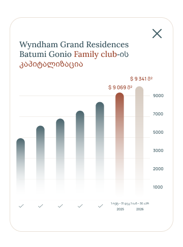 ჩვენს კომპლექსში რეზიდენციების მფლობელად გახდომით თქვენ შესაძლებლობა გეძლევათ გადაცვალოთ დასვენების დრო თქვენს რეზიდენციებში მთელს მსოფლიოში ყველაზე მდიდრულ სასტუმროებში დასვენების დროზე